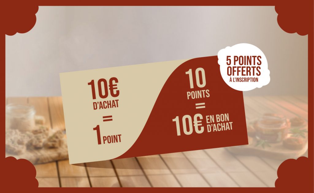 🎁 Comment ça marche ? • 10 € dépensé = 1 point fidélité • 10 points = 10 € offerts en bon d’achat sur la prochaine commande • Vos points sont crédités automatiquement à chaque commande • Le suivi de votre solde se fait depuis votre espace client
