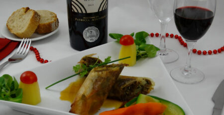 Nems de Confits de Canard du Sud Ouest au foie gras, sauce au miel.